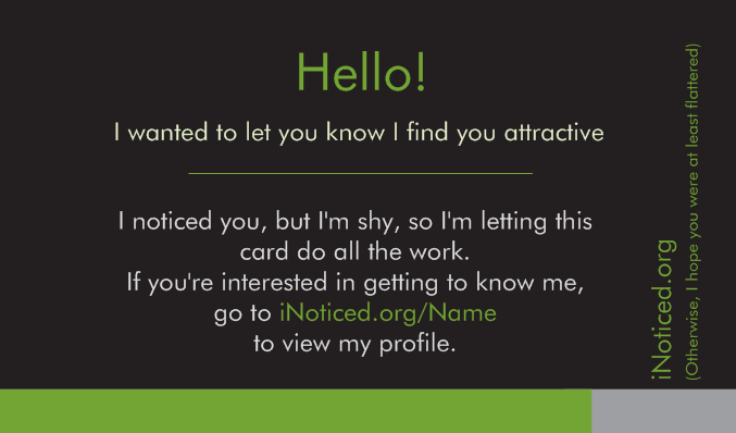 If you received this card, but aren't interested, hopefully you were flattered. Maybe you should tell your single friends about this site...